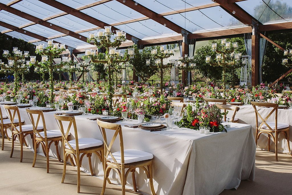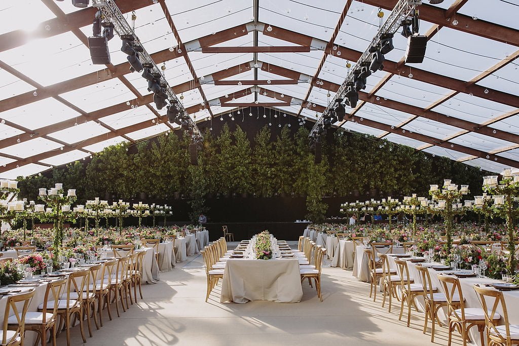 We are pleased to present the impressive decoration created by the Toni Seguí Barcelona team based on the guidelines provided by the Palatchi family and Gabriela. On this occasion, the creative concept for the décor was inspired by a magical garden, which required more than 60 lemon trees and century-old olive trees measuring 6 metres in height.