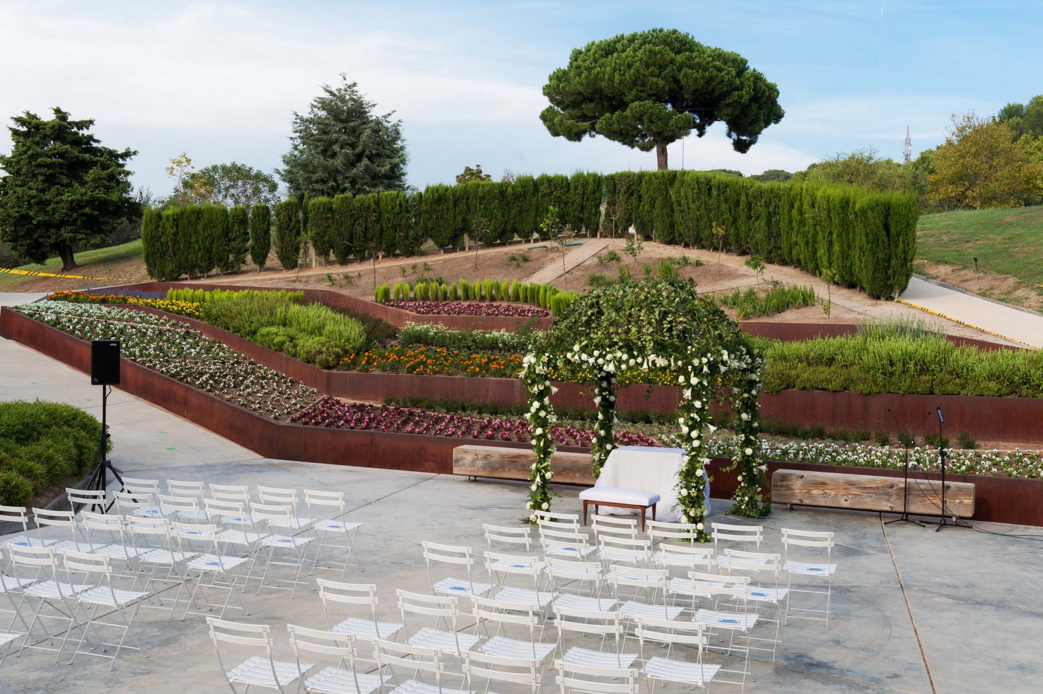 Buscábamos un espacio exterior en Barcelona ya que los novios querían una celebración romántica y personalizada. Se nos ocurrió proponer el Jardín Botánico de Barcelona situado en Montjuïch, espacio que sorprendió a los novios y familiares. El mayor esfuerzo estuvo centrado en la logística, ya que realzar su belleza para nosotros no fue un problema, pero las dimensiones y orografía del espacio requerían una gran organización.
