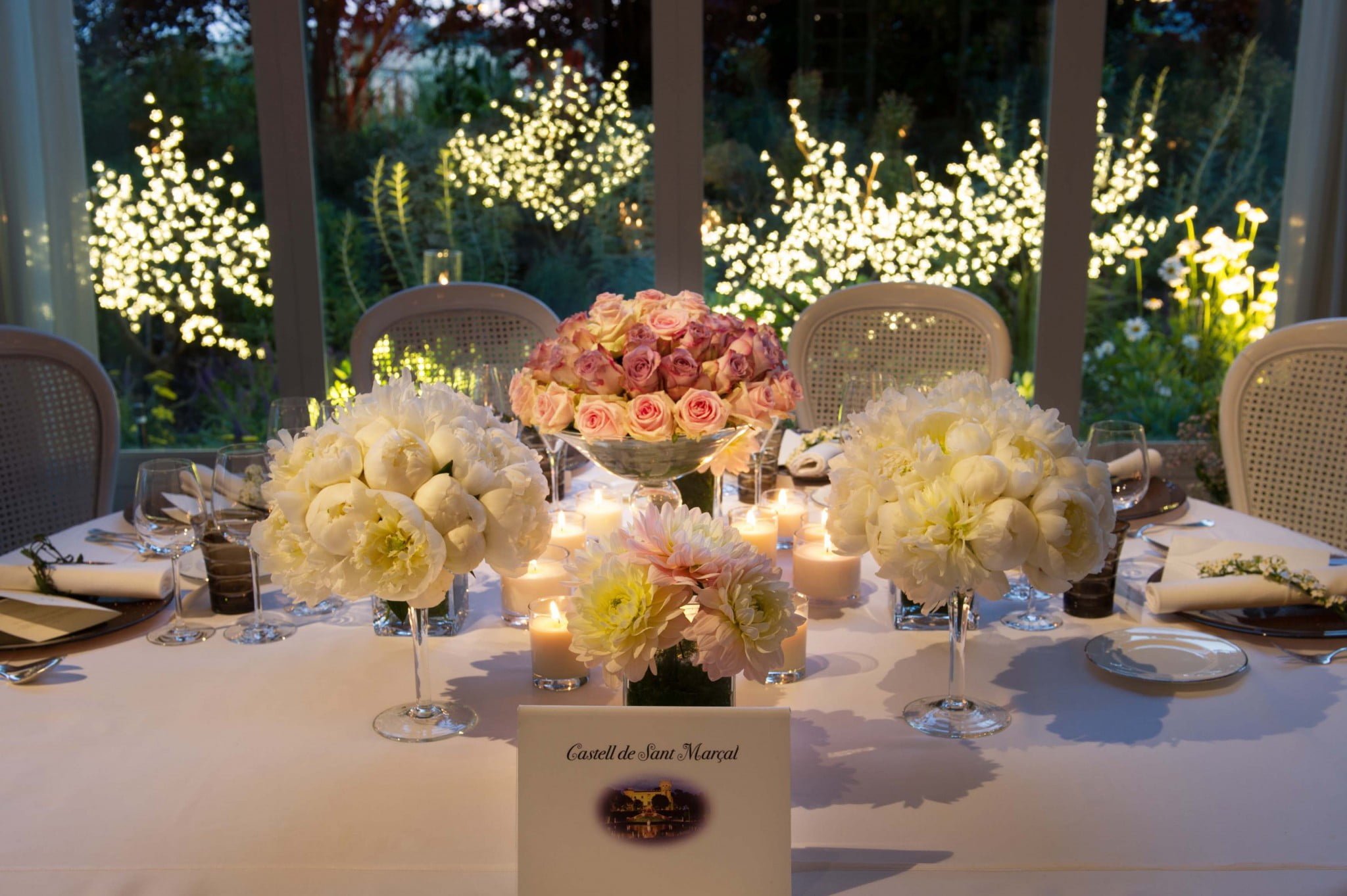 Una boda romántica estilo francés celebrada en el Castell de Sant Marçal con un gran protagonismo de la flor, que potenció el bello jardín del castillo y convirtió su comedor en un espectacular invernadero floral.